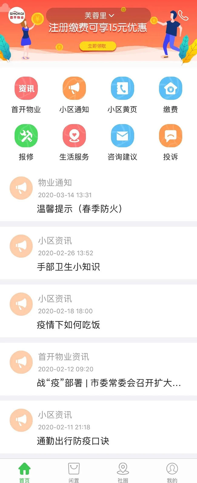疫情期间避免聚集,开展线上物业服务对于业主来说既安全又便捷。首开物业利用“首开益点通”智慧社区平台系统,为小区居民提供线上物业报修、物业咨询、小区通知等服务,同时还开展了“注册缴费立减”活动,让业主足不出户就能解决疫情期间的物业服务和缴费难题。通过在APP上及时更新疫情防护常识,开展防疫宣传,做到有效提醒,引导居民科学防疫,增强业主疫情防控意识。