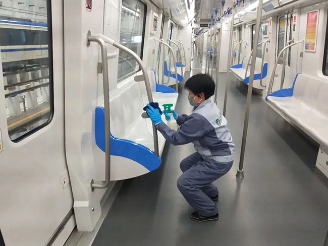 合肥地铁客车车厢,保利物业人在全力保障司乘环境卫生。