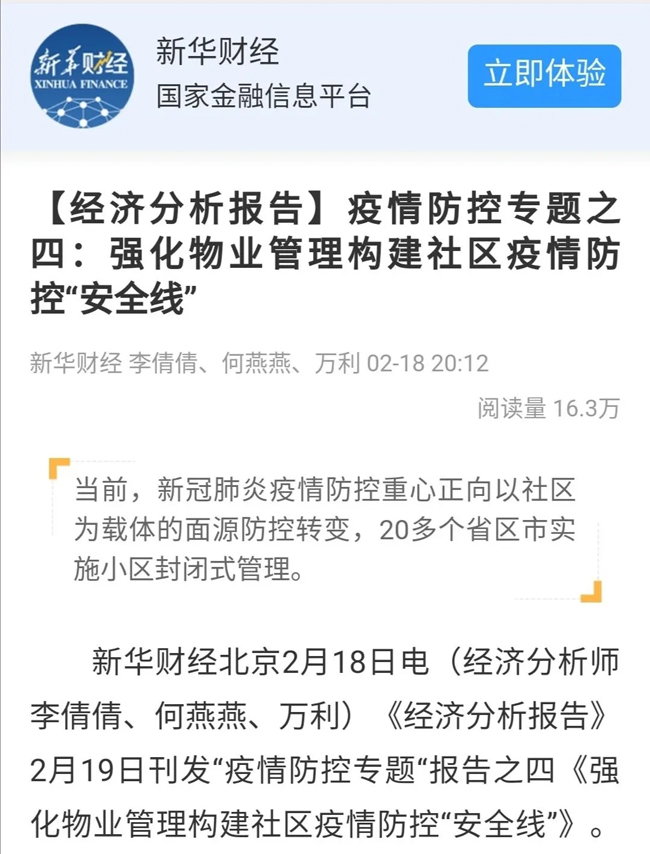 期间,协会紧密联系社会媒体,加大对行业防疫工作的宣传。新闻联播、央视新闻(多档节目)、人民日报、新华财经、新华网、人民网、央广中国之声、中国建设报、每日经济新闻、凤凰网、各地方媒体等,广泛报道物业管理行业防疫贡献,各类媒体对物业管理行业的关注报道前所未有。比如,新华社发布经济分析报告《强化物业管理构建社区疫情防控“安全线”》,高度评价物业管理在社区联防联控工作中的作用;人民日报发表评论,向奋战在一线的社区工作者致敬,称物业工作人员是打赢疫情防控阻击战的排头兵。