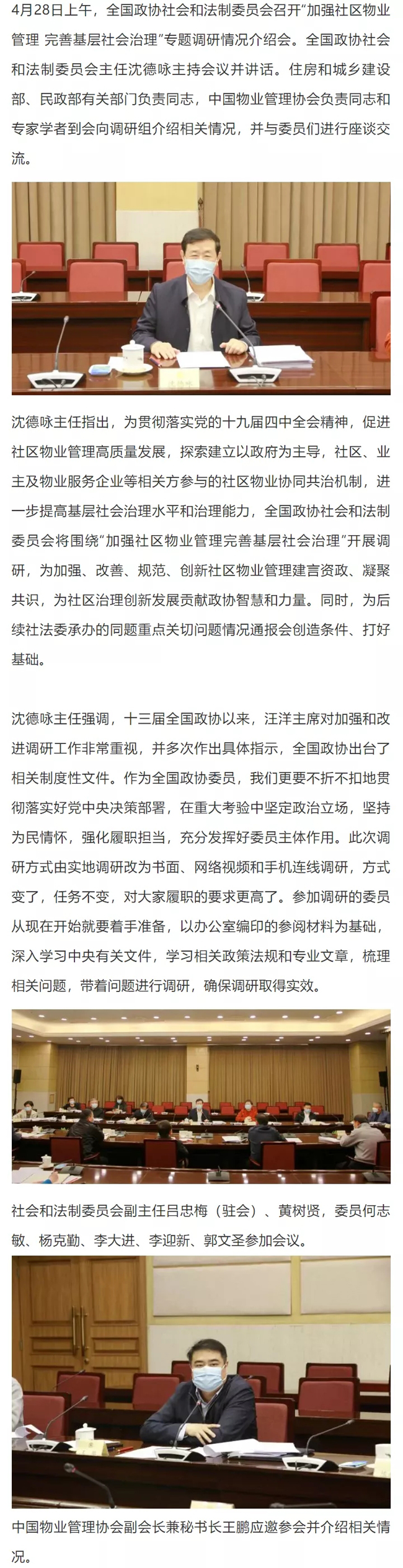 全国政协社法委召开“加强社区物业管理 完善基层社会治理”专题调研情况介绍会