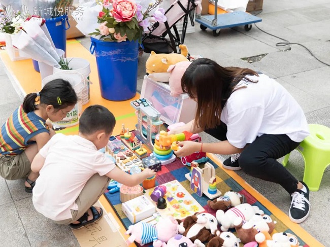 在整个活动过程中,新城悦服务的保洁人员及时清理通道垃圾,保持整洁的活动环境,秩序人员不间断地巡逻检查,确保“地摊经济”平安与治安秩序平稳。业主罗阿姨热情地表示:“我今天早早就来摊位排队了。这些都是我女儿从香港代购过来的银饰,摆摊可以实实在在让客户看到,都是邻居他们买着也放心。”另外一名业主王先生也为此次活动点赞:“这次活动我妈妈最积极,互动套圈游戏就是她的主意。感谢新城悦服务为我们业主那些退休后负责带娃的父母提供一个展现自我和放松的平台,希望摆摊活动可以定期做下去”。
