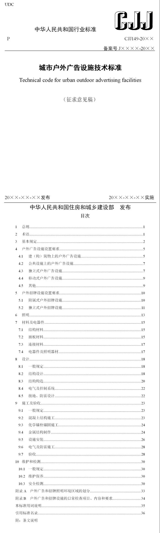 制定《城市户外广告设施技术标准(征求意见稿)》,旨在规范城市户外广告和招牌设施的设置,加强户外广告和招牌设施的管理,科学合理地利用城市空间资源,确保户外广告和招牌设施安全可靠,创造健康、有序的户外视觉环境。