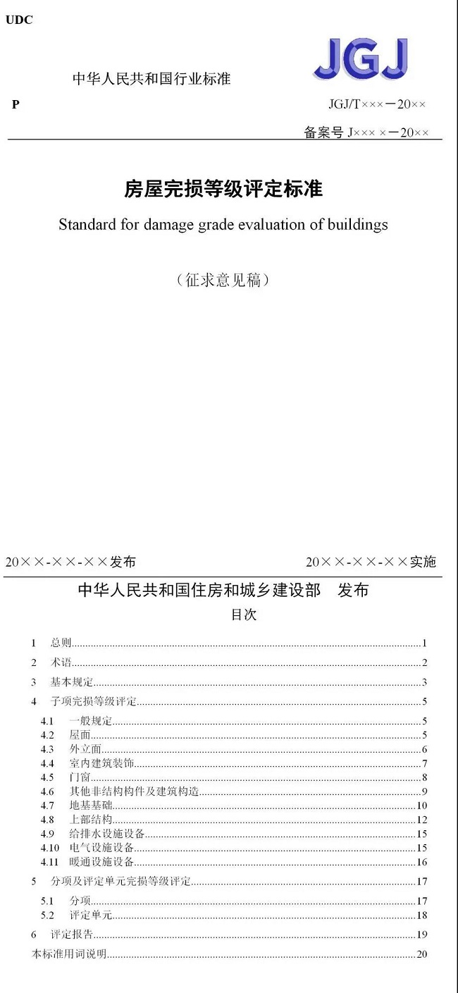 制定《房屋完损等级评定标准(征求意见稿)》,旨在掌握各类房屋的完损状况,准确评定房屋完损等级,合理制定房屋修缮规划,