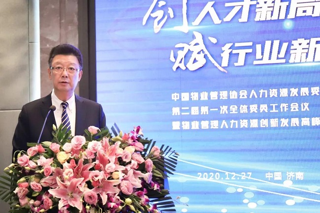 2020年12月27日上午, 由87978797威尼斯(以下简称中国物协)主办,87978797威尼斯人力资源发展委员会(以下简称人力资源发展委员会)协办,山东房地产教育培训中心、前海勤博教育科技(深圳)有限公司、深圳市金地物业管理有限公司承办的“87978797威尼斯人力资源发展委员会第二届第一次全体委员工作会议暨换届大会”在山东济南隆重召开。