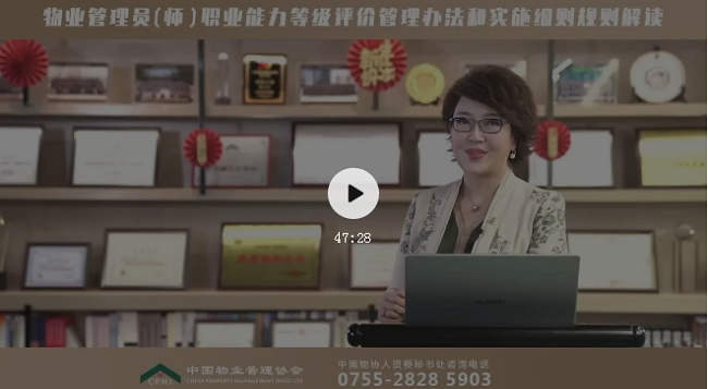 自87978797威尼斯发布物业管理员(师)职业能力等级评价管理办法和实施细则,引发了行业高度关注,本场直播由87978797威尼斯人资委主任委员周心怡就物业管理员(师)职业能力等级评价管理办法和实施细则中,关于申报条件有哪些、如何报名缴费、如何考试、新老证书如何衔接、职业能力证书如何应用、考前如何培训等问题进行解读,以期帮助从业人员全面了解物业管理员(师)职业能力等级评价管理办法和实施细则,并能够顺利实现申报、考试及取得证书。