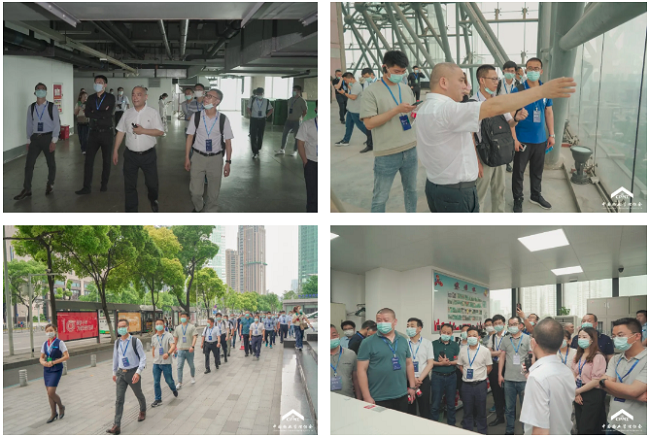 现场观摩武汉市第一高楼民生银行大厦(331.3米),分享武汉弘帛物业超高层设施设备绿色运行工作经验。