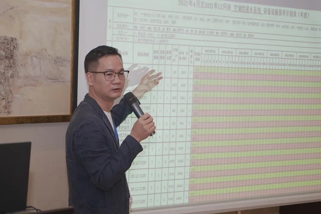 中国物协高级顾问、北京国基伟业物业管理有限公司总经理助理王寿轩主讲《楼宇空调系统绿色运行维护》,他从楼宇空调系统简介与基础管理、楼宇空调系统绿色运行、楼宇空调系统绿色维护、空调绿色运维规章制度四个维度讲授楼宇空调系统在设施设备绿色运行中重要性。