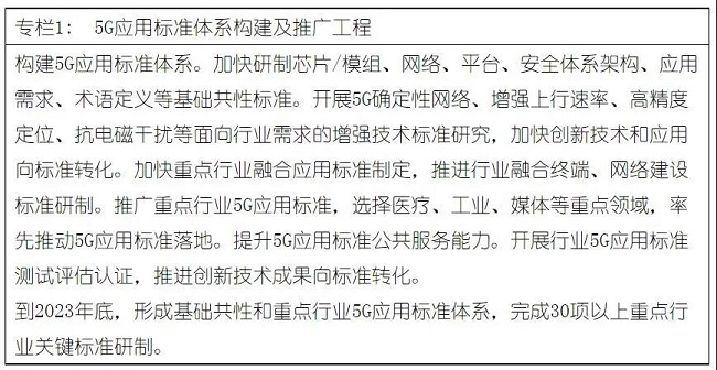 (一)5G应用标准体系构建行动