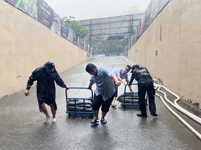为了应对汛期可能引发的各种灾情,北京国基伟业郑州区域紧急部署,吹响防汛“集结号”,成立防汛应急值班小组,及时发布气象信息及注意事项,各项目加强巡视巡查,项目负责人和一线员工24小时坚守岗位,全面排查各项防汛设施设备,仔细梳理防汛物资,有序开展防汛抗灾工作,大家迎着暴雨,查隐患、排险情、堵漏洞、清障碍,运物资,尽全力保障项目人员及财产安全。