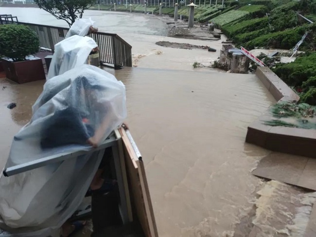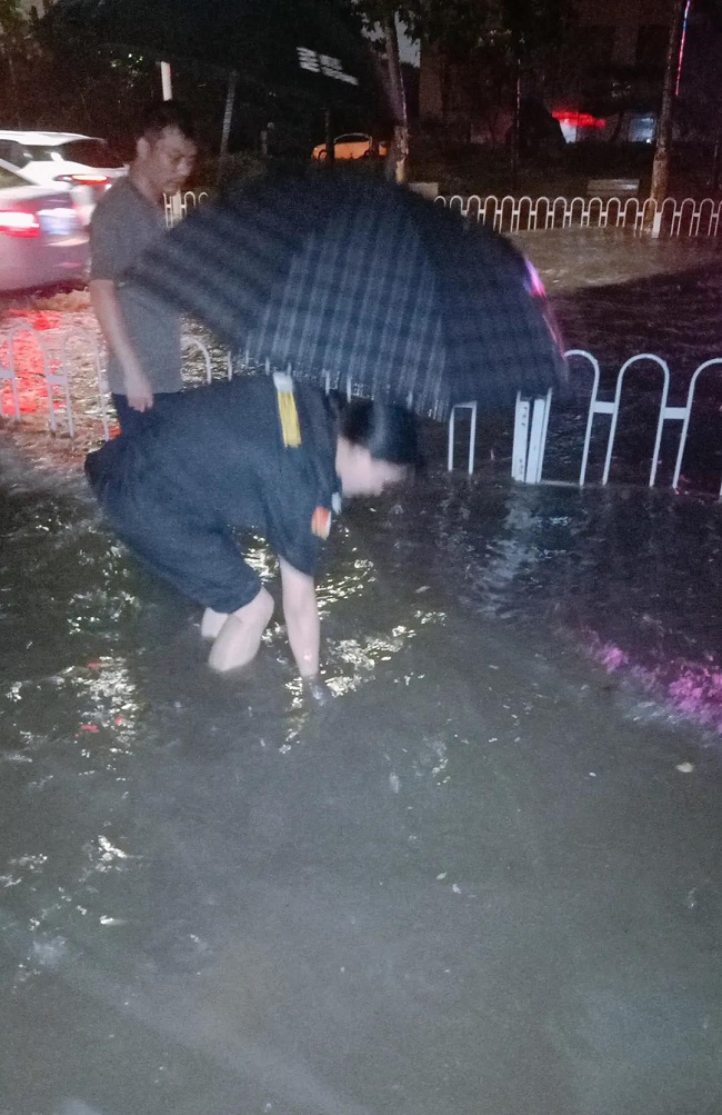 楷林商务服务的领导第一时间在前线指挥防洪工作,安排检查排水系统、紧急调拨防汛袋、加固防汛设施,工作人员冒雨指挥客户将车停在高处,保障客户财产安全,楷邻餐饮及时供餐,保证滞留人员餐食供应。