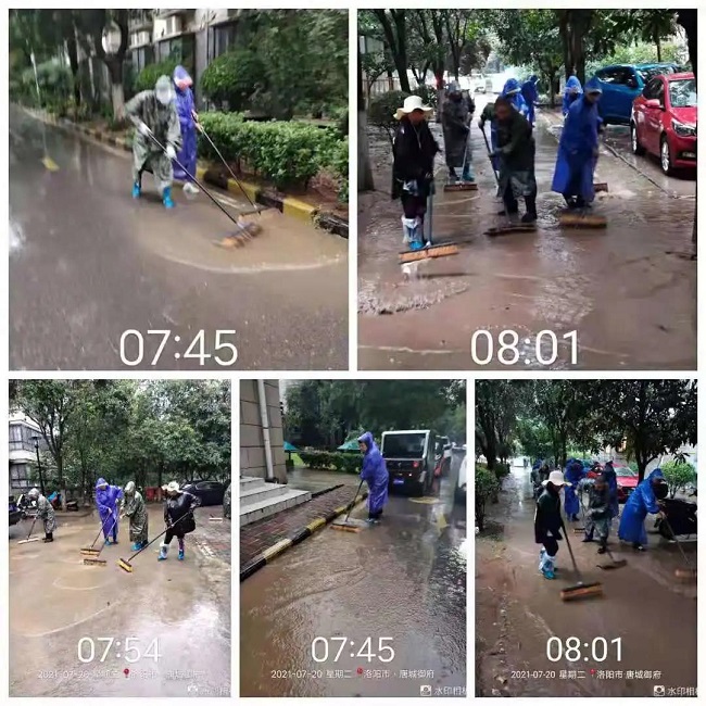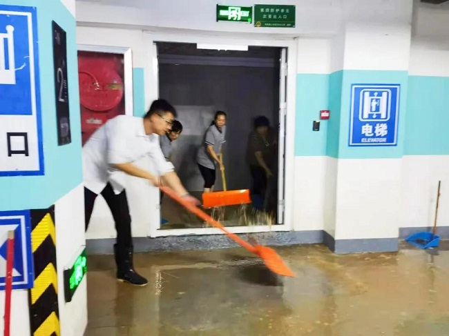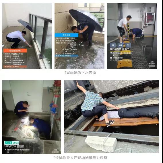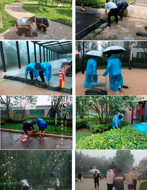 灾情发生后,长城物业华中区域事业部郑州城区在第一时间启动了防汛救灾预案,全员作战,通宵达旦抢险救灾,全力以赴确保郑州区域各项目业主的人身及财产安全。