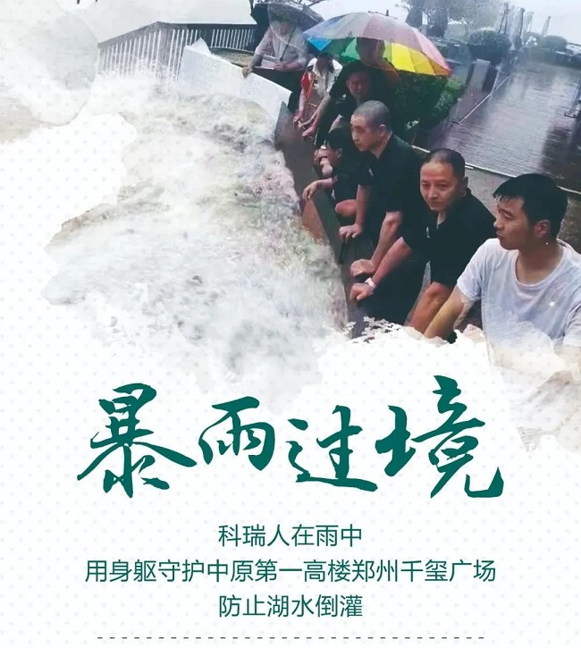 面对端恶劣的天气,科瑞物业人没有退缩、挺身而出。紧急动员、全面动员、全力以赴,用身躯守护中原第一高楼—千玺广场。接到上级紧急撤离命令,挨家上门疏散,确保一个都不掉队。为守护千万业户生命财产安全奋战在防汛的第一线!