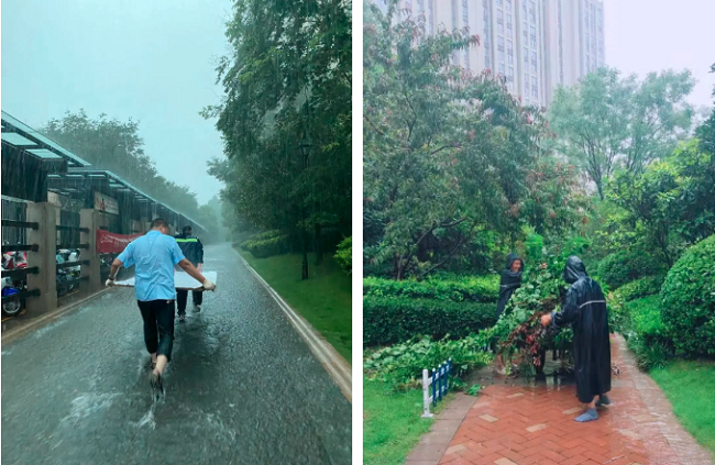 面对暴雨天气,融信服务郑州物业公司启动一级应急预案,成立防汛专项工作小组,确保业主的生活及财产安全。郑州融信江湾花苑项目物业服务人员为防止园区及地库雨水倒灌,提前准备防汛物资,全员进入备战。并及时排查空置房,为未入住的业主及时关窗锁门。