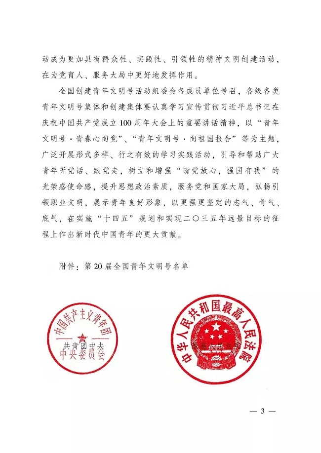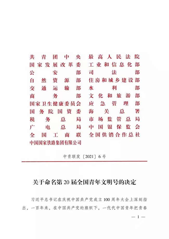 据了解,此次命名表彰由共青团中央、最高人民法院、住房和城乡建设部等23家全国创建“青年文明号”活动组委会成员单位联合开展。经逐级推荐、严格审核,最终确定名单。