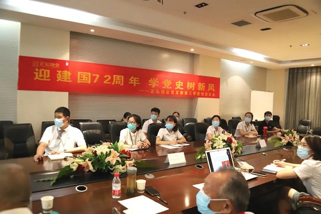 正弘物业支部书记梁英芳同志就本次党员大会发表感言,讲话感言中指出,希望我们可以从向焦老师、申老师这样的老党员身上,学习到无私奉献、艰苦奋斗、以国家和人民的利益为重的精神。