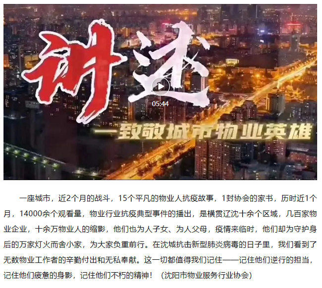 沈阳物协:视频《讲述》致敬城市物业英雄