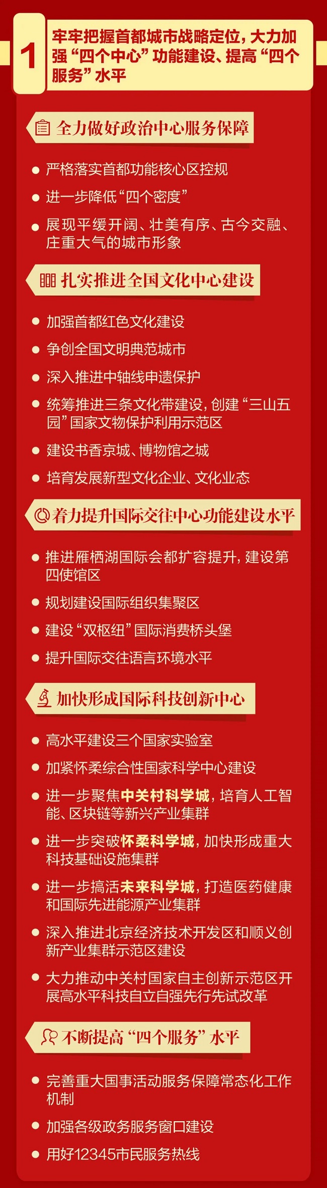 今后五年,北京将提高城市精细化管理水平,推进背街小巷环境精细化整治提升,持续推进生活垃圾分类,破解老旧小区物业管理难题,完善步行和自行车道网络。夯实基层治理基础,深化街道乡镇管理体制改革,增加社区工作力量,深化“回天有我”创新实践。