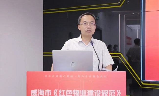 威海市物业管理行业党委副书记刘笃章为市、区市(开发区)物业服务企业做《红色物业,服务美好幸福新生活》的主题讲座。