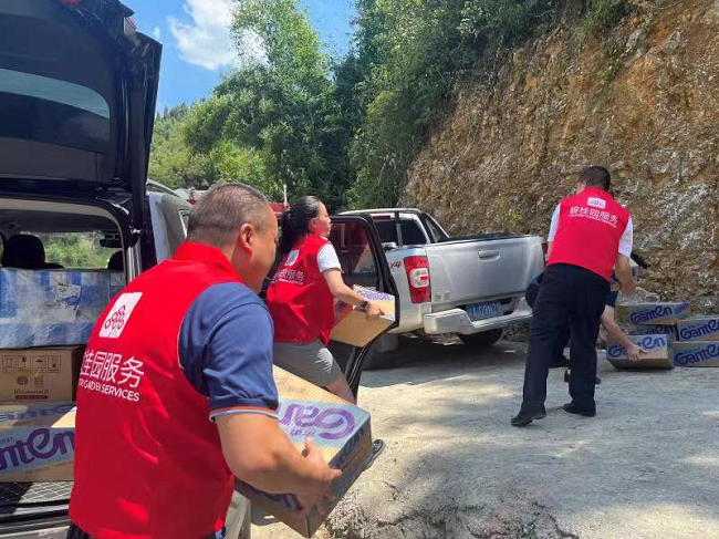 ▲碧桂园服务救援小队往南川区石莲镇运送物资