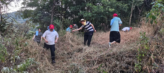 ▲保利物业志愿者带上工具前往巴南界石开辟防火隔离带
