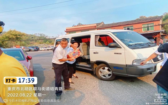 ▲金科服务志愿者运送物资到巴南界石山火扑救现场