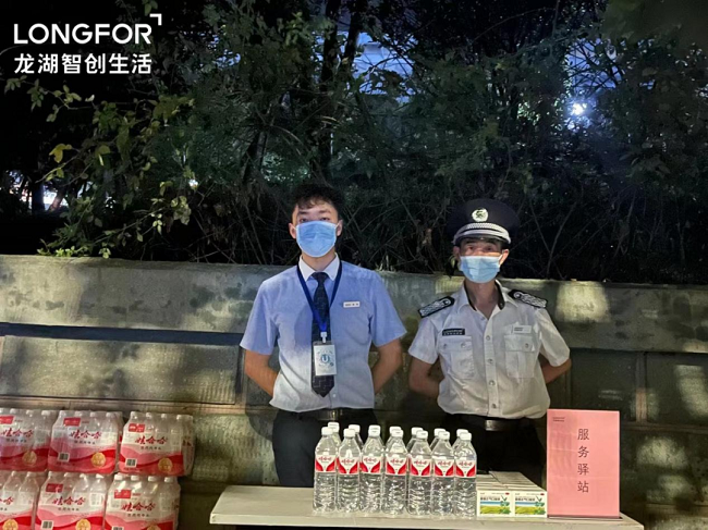 高温酷暑对物业人是极大的“烤”验。在滚滚热浪中,龙湖智创生活物业人始终坚守岗位,在小区里设置服务驿站、小湖冷饮铺,为业主提供饮用水、防暑药物,主动帮助老人小孩撑遮阳伞。