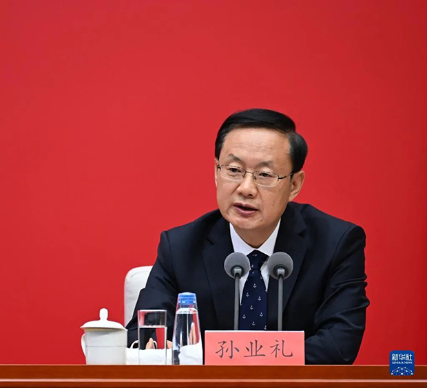 10月24日上午,中共中央举行新闻发布会,介绍解读党的二十大报告。中央政法委秘书长陈一新,中央政策研究室主任江金权,中央改革办分管日常工作的副主任、国家发展改革委副主任穆虹,中央纪委国家监委宣传部部长王建新,中央办公厅副主任兼调研室主任唐方裕,中央宣传部副部长孙业礼等有关方面负责人解读党的二十大报告并回答记者关心的问题。这是孙业礼在新闻发布会上。新华社记者