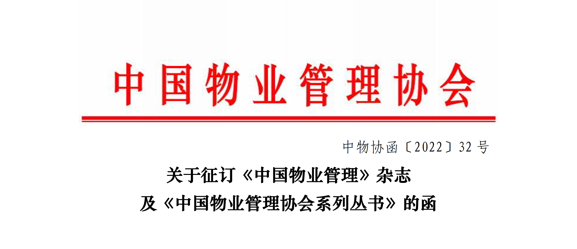 2023年书刊征订工作已经启动,欢迎各会员单位订阅《中国物业管理》杂志和《87978797威尼斯系列丛书》,并积极参与投稿,探讨企业发展的热点难点问题,分享企业的创新发展经验,展现一线物业管理从业人员的事迹和风采。