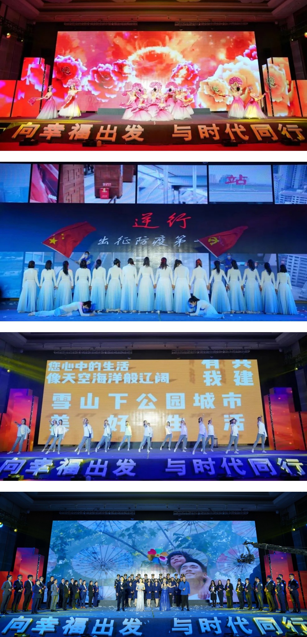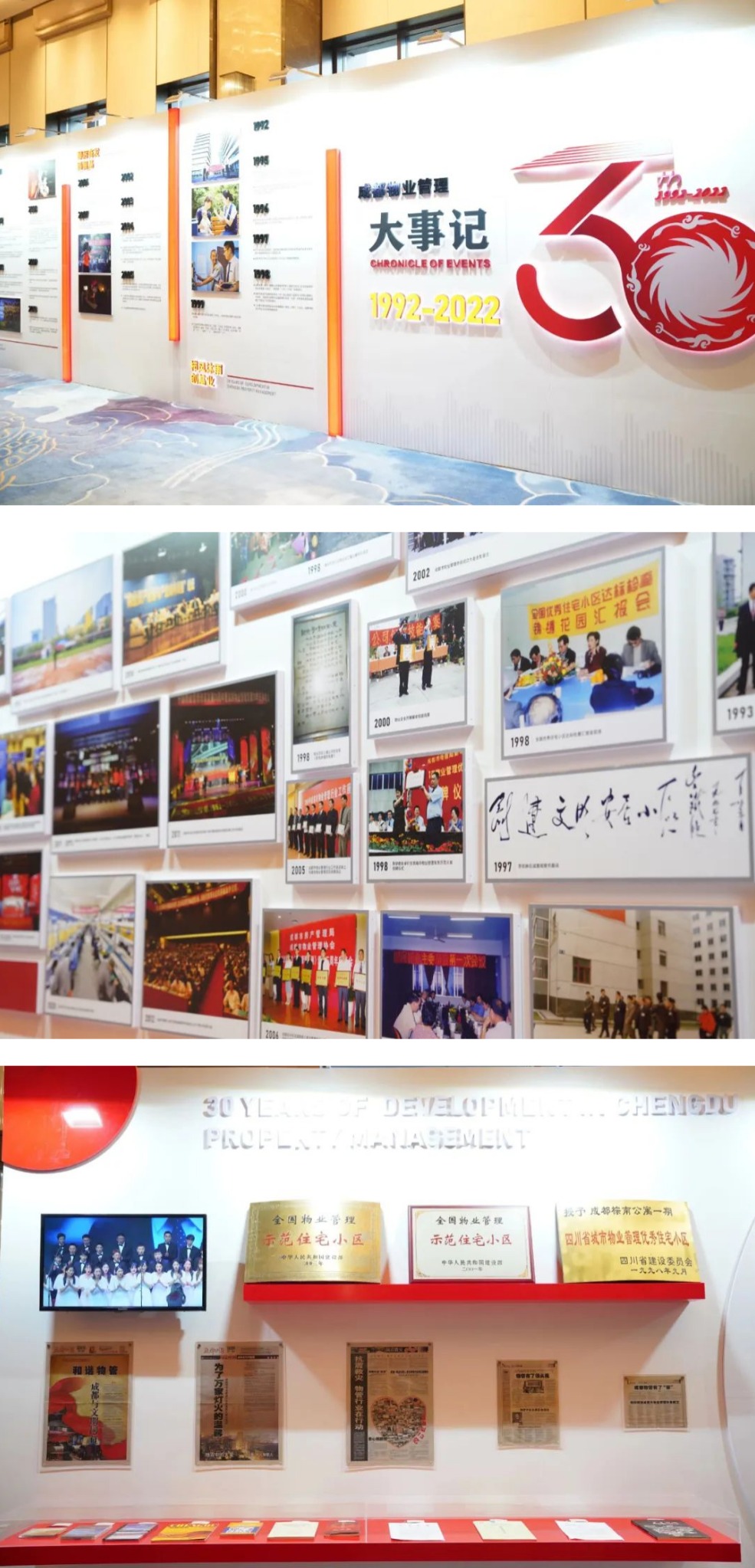 庆典活动分为“党建引领 凝聚合力”“暖心相守 提质幸福”“踔厉奋发 开创新局”三个篇章,嘉诚新悦、保利、成飞等单位分别带来了舞蹈《盛世花开》、歌舞《物说新语》、情景舞蹈《战疫》、合唱《新的天地》等节目表演。活动现场还通过成都物业管理发展30年大事记和发展历史回顾展等形式,全方位多角度立体展现了成都物业管理行业30年来的探索实践和发展成绩。全市物业服务企业及从业人员也纷纷通过视频直播平台观看活动盛况。整场活动始终洋溢着“为幸福赓续奋进、与时代同频共振,向榜样学习致敬”的主旋律。