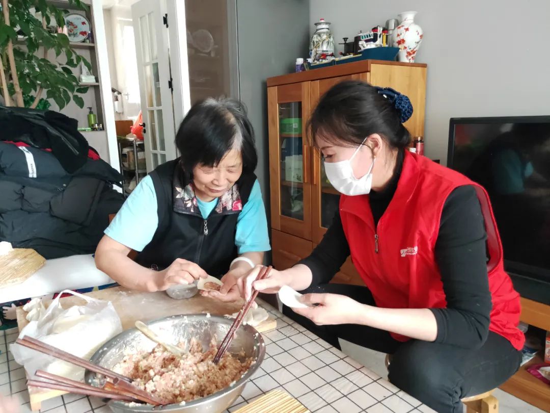 除夕当天,清晨6点嘉诚新悦的物业管家张瑞华、梁悦、孙琪琪就来到菜市场采购新鲜的食材,随后到许叔叔和徐阿姨家里,为他们亲手包饺子做团年饭。初一当天,嘉诚新悦物业工作人员又早早地煮好了热腾腾的汤圆,赶在9点前亲手为老人们送去象征着团圆、幸福的汤圆,希望老人们健康长寿,幸福安康。