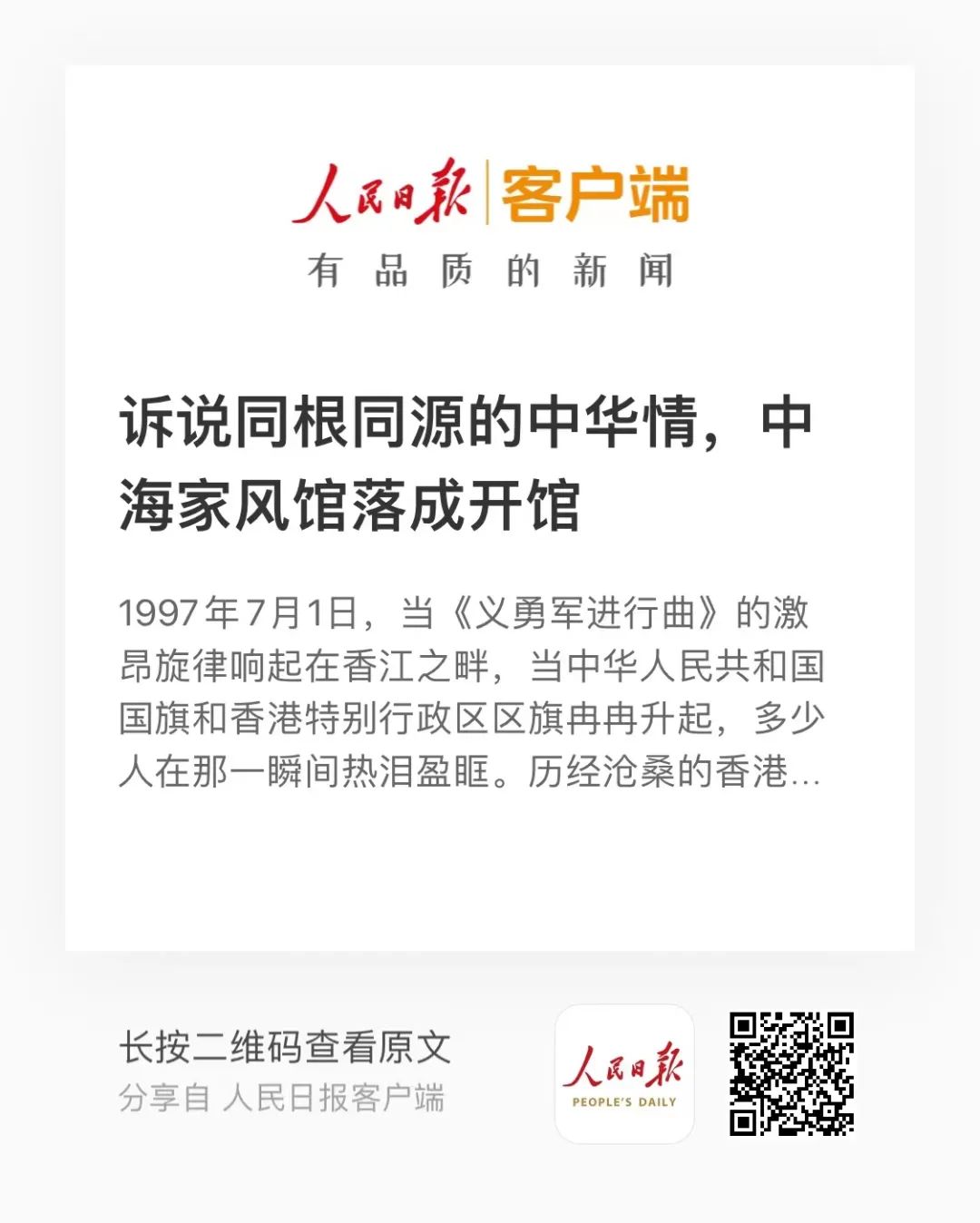 在成都,中海物业建成一座“中海家风馆”,占地约400平米,作为一个综合性平台已成为当地的一张名片。家风馆突出“设计理念人性化、宣传内容形象化、宣传方式多样化、互动参与趣味化”的特点,以家风习语、家国春秋、家国天下、家训领潮四大展区和到家风教育体验区,向业主开展融知识性、体验性、互动性和趣味性于一体的家风家教活动。人民日报新媒体客户端刊发《诉说同根同源的中华情,中海家风馆落成开馆》文章,称赞此举“打通了社会主义核心价值观和优秀传统文化的衔接血脉。”