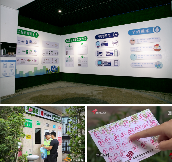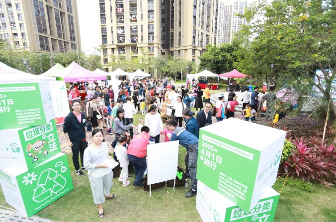 在光大花园建成垃圾分类科普厅,内含“时代精神篇”“环境危机篇”“垃圾分类通识”三大区域,并展示社区业主利用可回收垃圾制成的工艺品;中海云麓公馆鼓励业主正确分类获取印花,换取绿植,再把生活垃圾制成有机肥后回赠业主用于绿植施肥,通过环保闭环,大大提高了业主参与垃圾分类的自觉性。