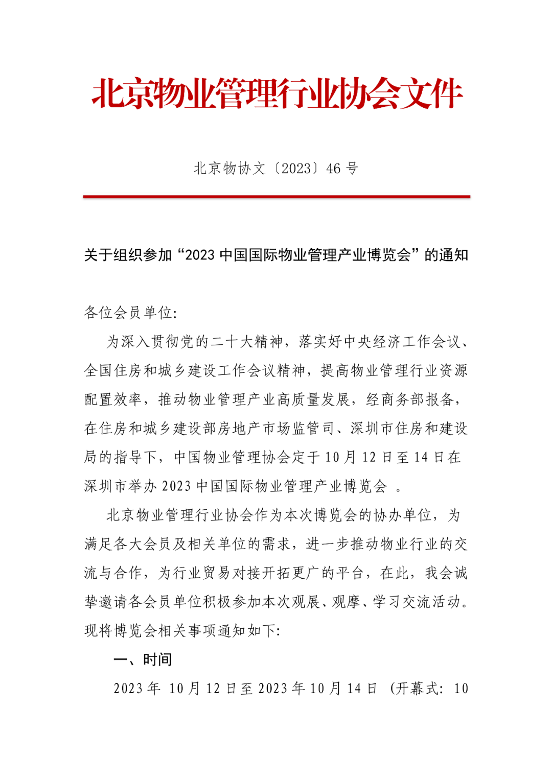 北京物协将发动全体会员单位积极参与2023中国物博会,动员相关供应商单位参加展览,鼓励会员单位组织员工观展、参加论坛及其他中国物协开展的交流活动。动员方式包括:一是在公众号转发2023中国物博会相关通知,并通过北京物协官网、微信群等多个渠道进行宣传;二是组织动员各专委会委员参与第六届物业管理创新发展论坛及相关参观交流活动;三是在协会理事群、会员群内进行动员,把信息传递到会员单位,尽最大努力协办好2023中国物博会。