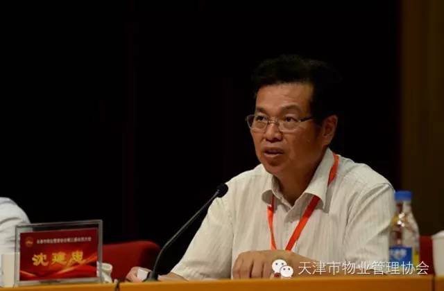 沈建忠会长对当前物业管理行业面临的形势进行了全面分析。结合形势,他对我市协会新一届理事会提出三点期待。一是顺势而为,坚定落实行业扶持政策。借助天津市政府将“加强社区物业管理工作”纳入民心工程,物业管理工作得到社会各界空前关注的机会,引导企业稳健落实天津一系列扶持政策,切实将政策红利落到行业发展实处。二是规范发展,持续推进信用管理机制。诚信体系建设是天津市物业管理工作的一大亮点。我们期待天津市在“将业主交纳物业费纳入个人征信”这项工作上能走在全国的前列,为全国全面实施发挥示范作用。三是强化职能,充分发挥协会协同机制。我们欣喜地看到天津物协新一届理事会引入会长轮值制、新成立监事会,新建8个专业委员会,协会领导班子构成和组织架构实现了很大程度的优化。希望天津物协在做好协会工作的同时,能及时汇总发展成果和好的管理经验,使之在内产生更大的影响力,带动其他地区的同步发展。