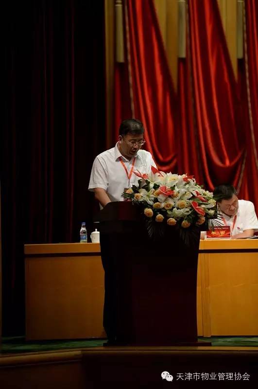 市国土房管局副巡视员陈恒斌在讲话中认为,协会第二届理事会认真贯彻执行协会章程,严格贯彻行业政策法规,积极配合行政主管部门的工作,在推进物业管理法制化建设、不断强化行业诚信自律等方面取得了很好的成绩,有力地促进了行业健康发展,为“美丽天津”建设做出了积极贡献。同时他对行业发展提出六点意见:一要高度重视行业文化建设,叫响天津物业管理行业精神;二要大力加强行业队伍建设;三要引导鼓励企业做大做强;四要全力破解物业费收缴率低的难题;五要依法营造诚实守信的市场环境;六要充分发挥行业协会服务保障作用。