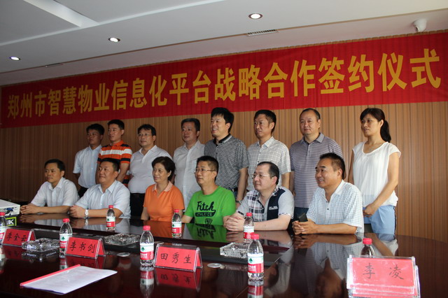 首先,在第一会议室,举行了郑州市智慧物业信息化平台战略合作签约仪式。郑州市物业管理协会、中国移动集团郑州分公司、河南业主之家互联网信息服务有限公司三方的代表,在郑州市智慧物业信息化平台战略合作协议书上,进行了签字。