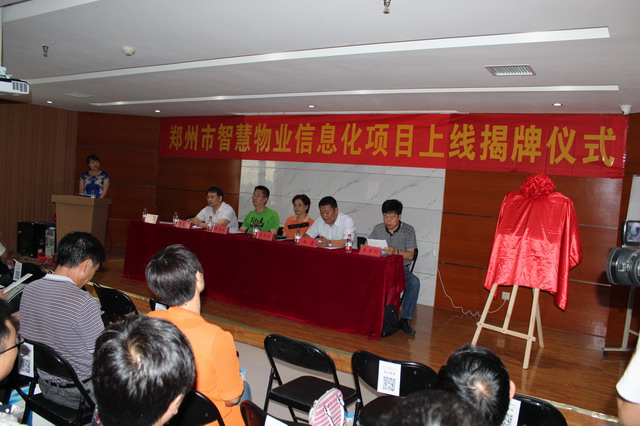 7月25日下午,郑州市物业管理行业智慧物业信息化平台项目上线运行仪式,在河南领域物业公司会议室隆重举行。郑州市物业管理协会会长李全云、市房地产管理局物业管理处处长黄海波、郑州移动公司副总经理汪勇、郑州银行科技处处长贾爱军,市物业管理协会副会长李书剑、市物业管理协会副秘书长田秀生,郑州市物业管理行业智慧物业信息化项目组各方负责人、专业工程技术人员,以及部分物业服务企业总经理,共100多人参加了仪式。仪式由协会轮值副会长李书剑、余明分别主持。