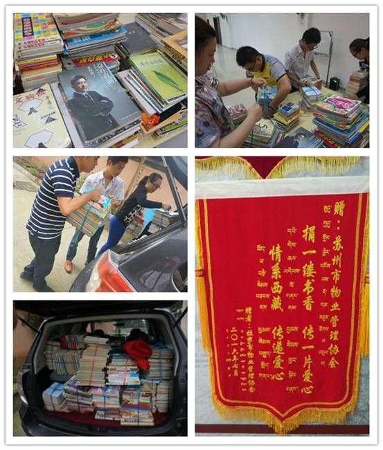 至7月,共收到近千本捐赠的书籍,苏州市物业管理协会将该批书籍收集整理后邮寄至西藏自治区拉萨市物业管理协会,再由他们送至当地的学校,给那里的孩子提供精神食粮,以满足他们对阅读的渴望。拉萨市物业管理协会也为苏州市物业管理协会赠送了锦旗以示谢意。