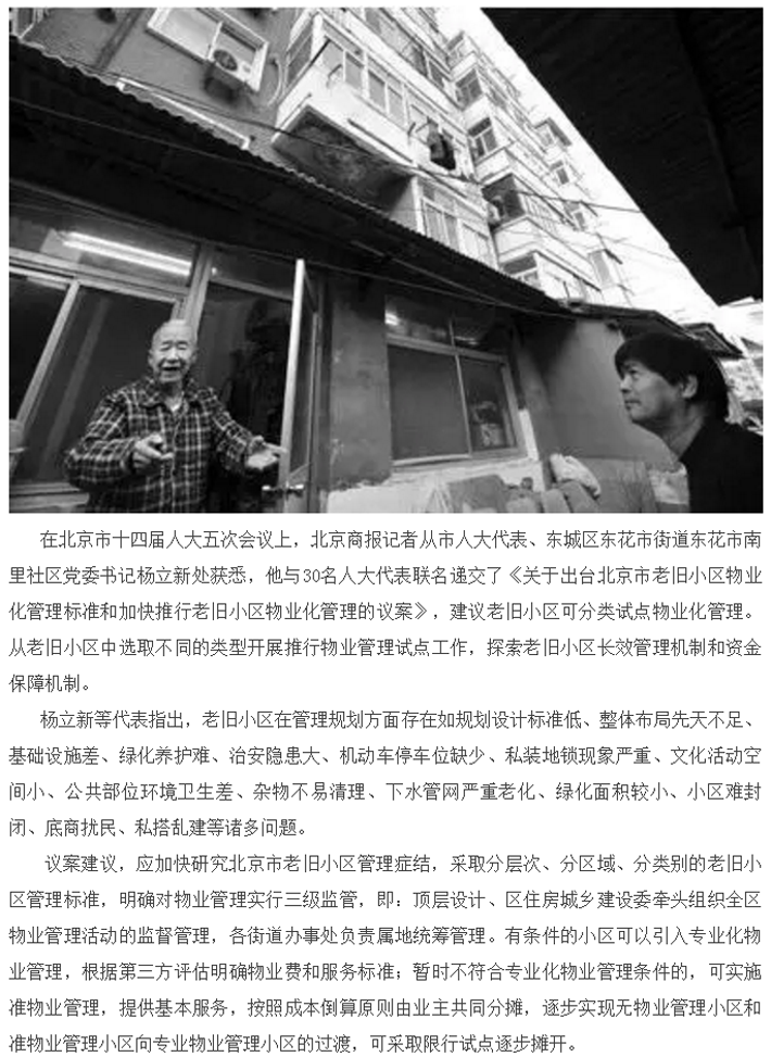 北京老旧小区分类试点物业化管理