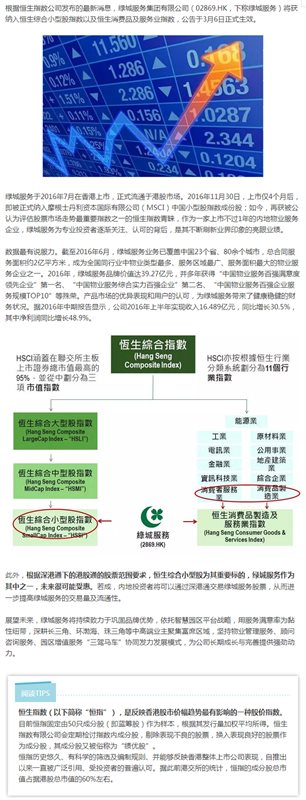 绿城服务纳入恒生综合小型股指数 或受惠深港通