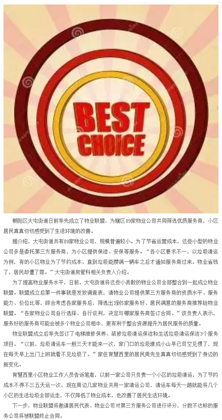 物业联盟为居民挑“管家”