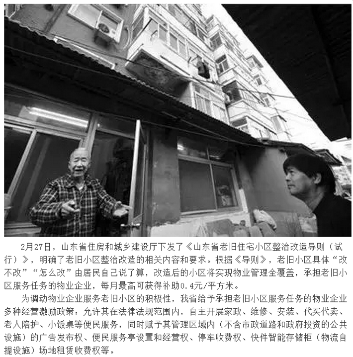 山东省物业企业接管老旧小区每月最高补助0.4元 ㎡