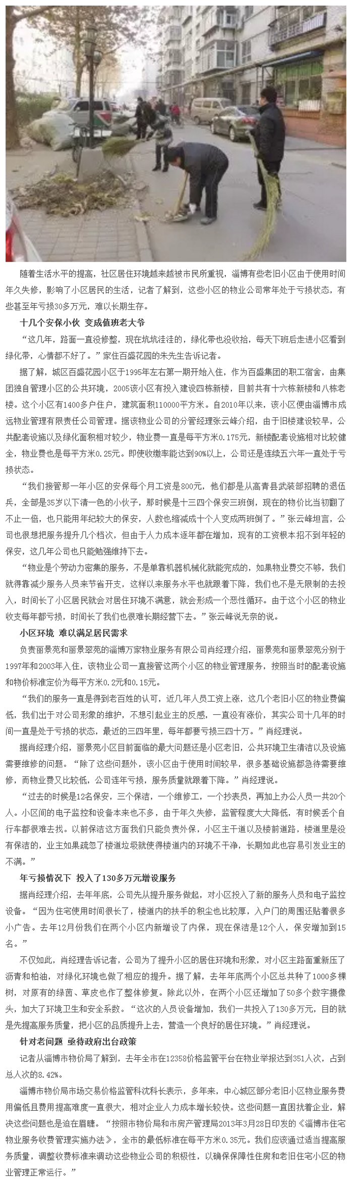 物业年年亏 淄博部分老旧小区物业公司经营陷入困境