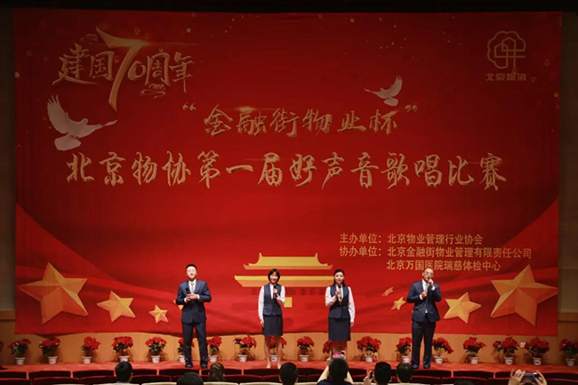 为了积极响应中共北京市行业协会商会综合党委关于《2019年社会组织党建工作要点》中所提出的要围绕建国70周年、建党98周年等重大事件开展文体活动的要求,20199月,北京物业管理行业协会成功举办了庆祝建国70周年金融街物业杯北京物协第一届好声音歌唱比赛活动。