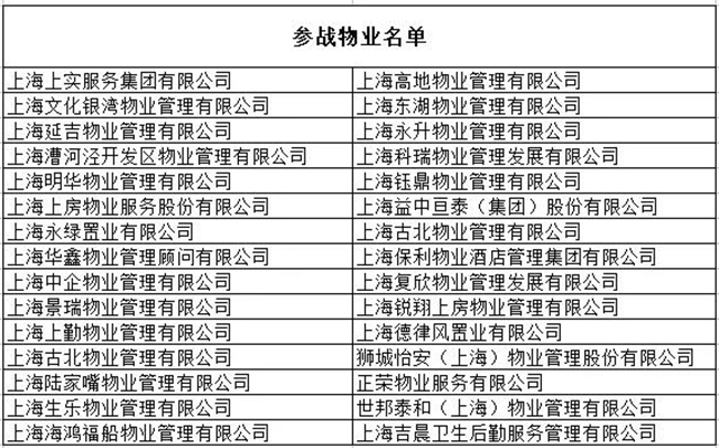 上海首批参战物业名单(排名不分先后)