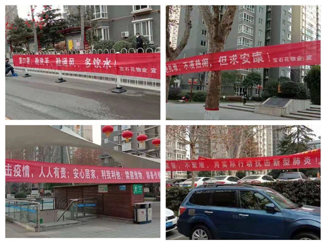 自疫情防控工作全面启动以来,宝石花物业长庆油田地区公司按照驻地政府、宝石花物业总部、长庆油田公司的安排部署,精心落实联防联控的各项工作,领导小组主动担当,靠前指挥,分工包片,责任到人,指导各项目部制定联防联控实施细则,细化信息报送、住户摸排、消杀防护、服务保障、防疫宣传、特殊群体关爱、疫情物资保障、加大对一线员工的慰问等各项工作。同时招募宝石花志愿者,义务为小区隔离住户清理垃圾、上门送菜、电话寻访住户体温,在公用场所喷洒消毒液、捐款捐物,群防群治成效凸显,与居民一起筑牢了小区防疫的“第一道防线”。