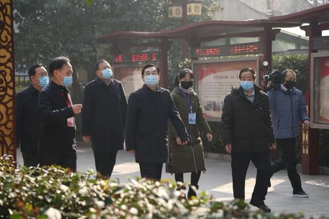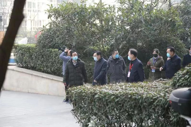 2月13日上午,陕西省委书记、省人大常委会主任胡和平,省委常委、西安市市委书记王浩等一行来到宝石花物业长庆油田地区公司西仪项目部红专南路长庆坊小区,视察指导小区物业一线疫情防控工作。