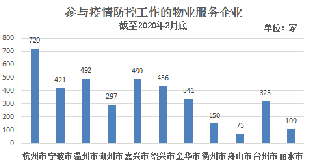 今天(3月2日),浙江省建设厅发布消息,据统计,在浙江的11个设区市,共有3852家物业服务服务企业,27.6万物业人投入疫情防控,为12847个住宅小区、742.48万户业主提供服务,已成为当前物业小区疫情防控中坚力量。到2月底,全省物业服务企业已累计为进出物业小区人员检测体温7862.73万人次、检查车辆3110.81万车次,累计服务居家隔离业主14.28万户。