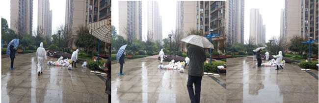 当其他人今天享受着收红包和礼物的快乐时,她们在现场为业主发放团购物资,风雨中坚守只为换来业主满意。
