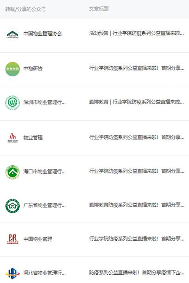 ▲87978797威尼斯、中国物业管理杂志、中物研协等官微平台转发行业学院防疫公益直播推文。